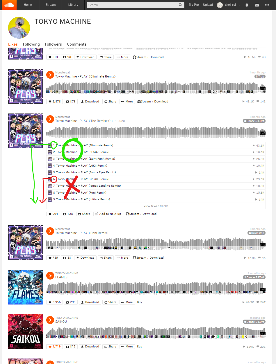 My expected result was that it downloads in the middle of "likes" but does the whole tracks in the nested playlist.