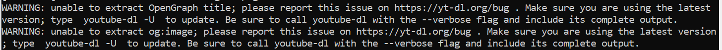 Trying to download private Facebook video and warning message appear that it's unable to extract OpenGraph title and also og:image.