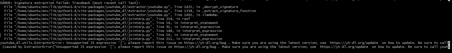 File "/usr/local/bin/youtube-dl/youtube_dl/extractor/youtube.py", line 1426, in _decrypt_signature