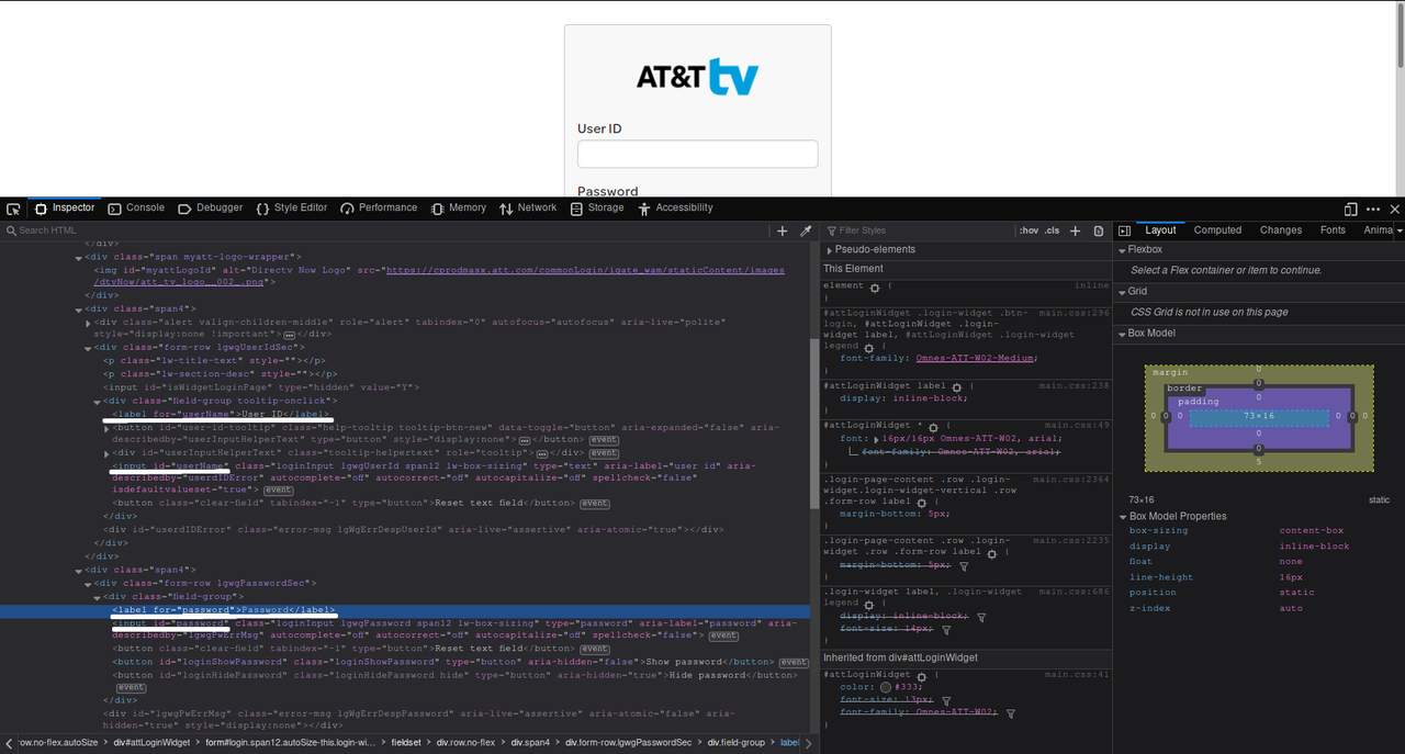 But when presented with the AT&T TV Login page (when logging in via the browser) the username field ID is