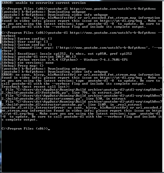 ERROR: no conn, hlsvp, hlsManifestUrl or url_encoded_fmt_stream_map information found in video info.