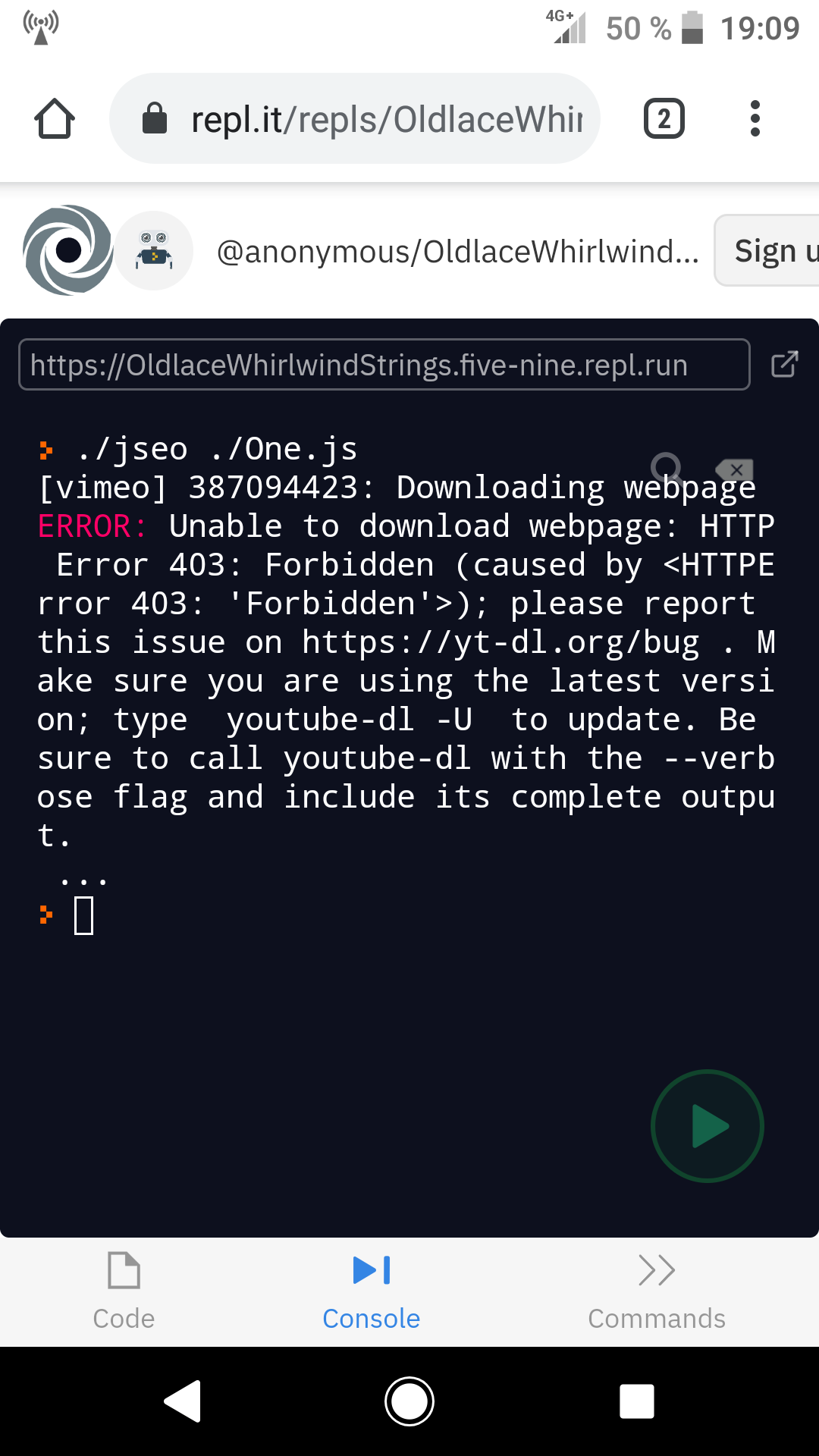 HEre is à console hou can try any URL from vimeo :: forbidden :: .