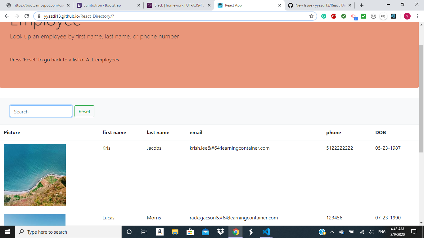 Given a table of random users, when the user loads the page, a table of employees should render.