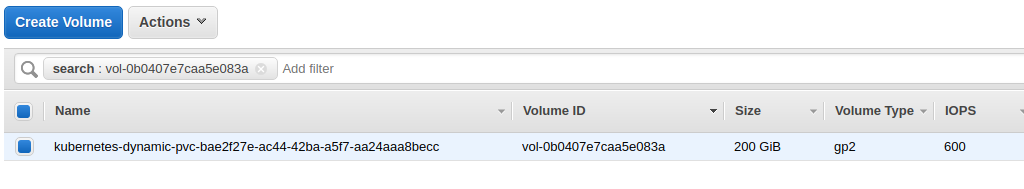 When we check the AWS console, the volume does exist.