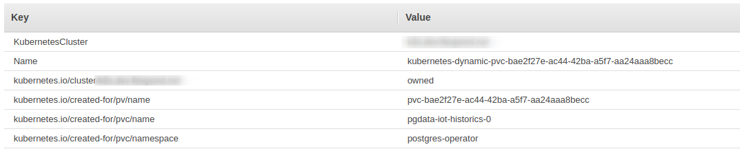 time="2020-07-08T07:56:39Z" level=warning msg="error while syncing cluster state: could not sync persistent volumes: could not sync volumes: could not resize EBS volume \"vol-0b0407e7caa5e083a\": could not get information about the volume: InvalidVolume.NotFound: The volume 'vol-0b0407e7caa5e083a' does not exist.\n\tstatus code: 400, request id: 6804d969-3971-46a6-b0d3-66cda100a629" cluster-name=postgres-operator/iot-historics pkg=cluster