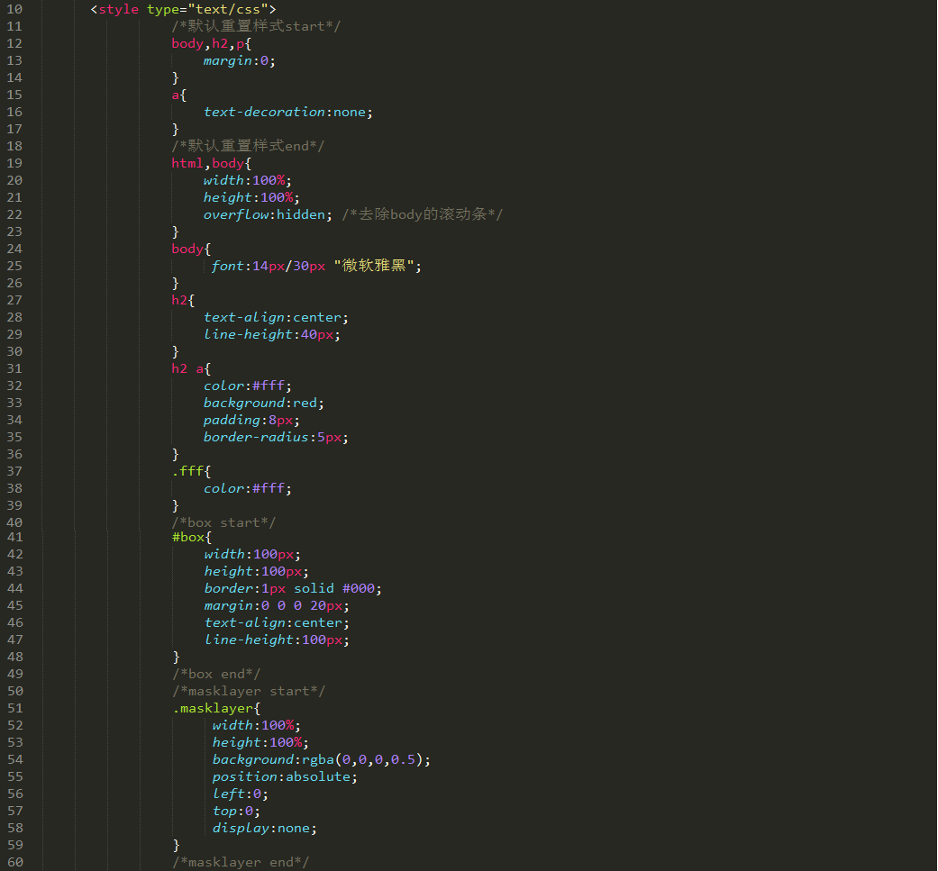 - 当弹出层的盒子是用display:none属性时,用原生js,obj.offsetWidth;obj.setHeight,是获取不到它的宽度和高度的,可以试一试的,它的宽度和高度显示是0的,但是在jquery中,这两个方法,确实有值的,无论你元素是隐藏还是从页面中删除,都是有值的,当使用display:none的时候,我做拖拽的时候,动态的获取宽度高度是,是有些问题的,就是始终没办法水平居中,然后把它换成具体的数值之后,却是正常水平垂直居中,如果你知其中的原因,可以告诉告诉我,非常谢谢的哈,当然我没有用这个属性,用的visibility:hidden,然而这个却是一点问题也没有,动态的获取数值,水平垂直居中,个人推荐使用这个,用具体数值,可拓展性不怎么好,还是尝试着多用js动态的操作dom元素吧