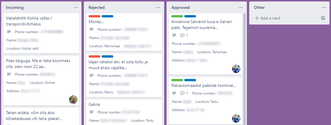 - Trello board for sorting requests and marking them as approved or rejected