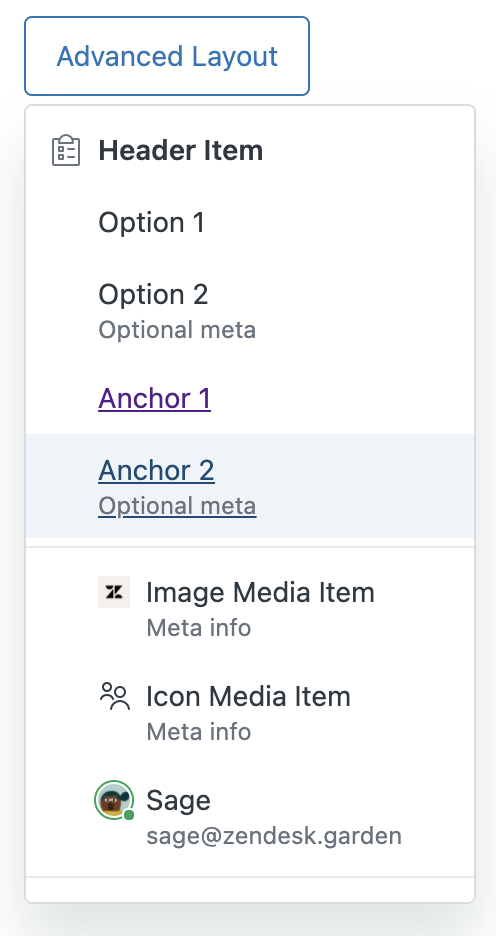 <a>or Garden<Anchor>added as a menuItemchild.Detail
