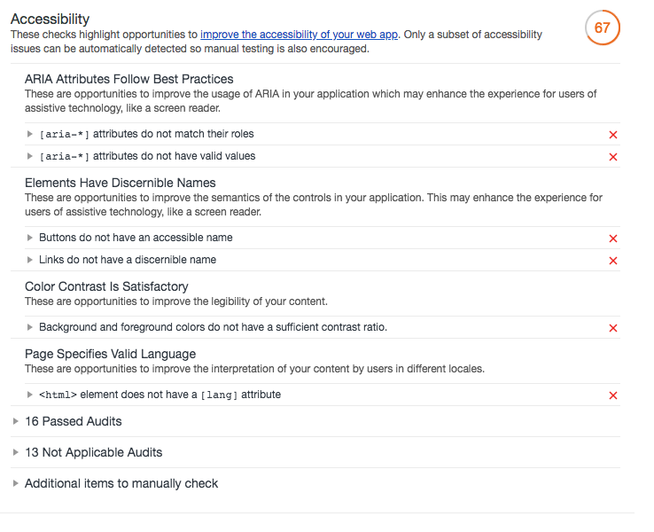 TL;DR: We have improved from an aggregate lighthouse accessibility score of 45% to 98.5% across ALL packages (with the remaining failures being lighthouse miss-fires) 🎉