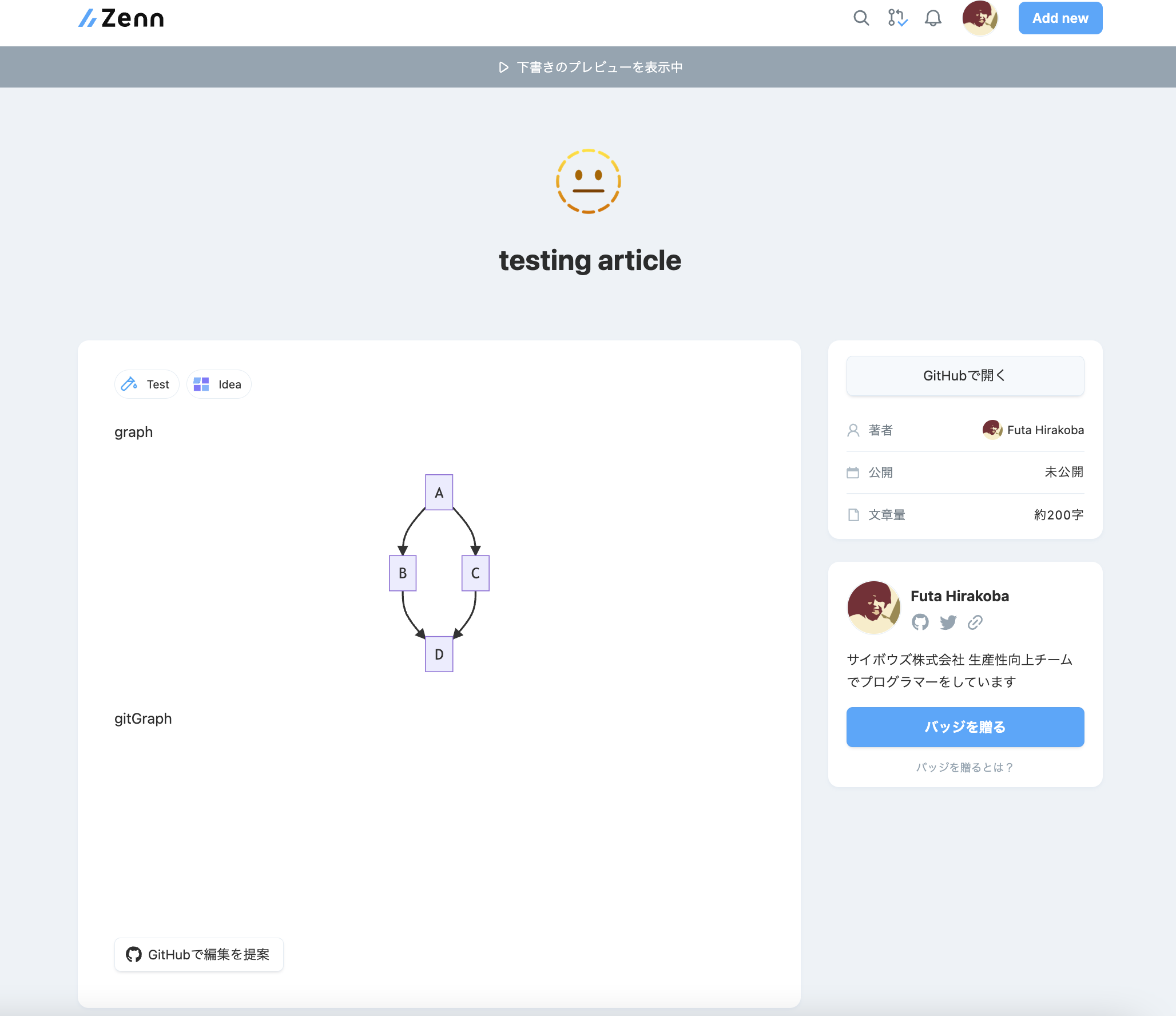 mermaid.js によるダイアグラム表示について、gitGraph が表示されません。