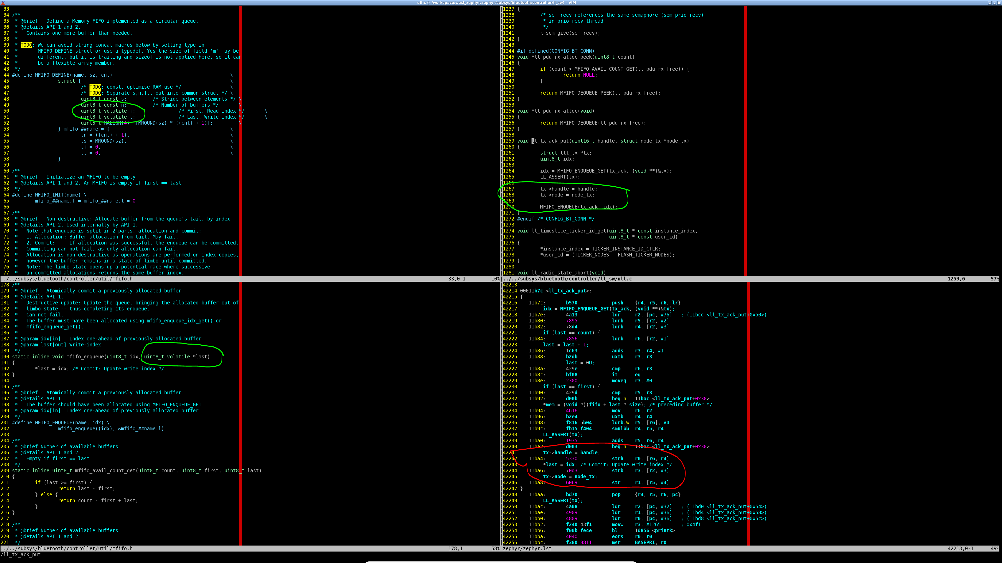 Fix Tx Buffer Overflow caused by uninitialized node_tx memory being used by ULL ISR context due to Compiler Instructions Reordering in the use of MFIFO_ENQUEUE. The MFIFO last index was committed before the data element was stored in the MFIFO due to Compiler Instructions Reordering. This is fixed now by adding a Data Memory Barrier instruction alongwith a compiler memory clobber. Fixes zephyrproject-rtos#30378. Signed-off-by: Vinayak Kariappa Chettimada <vich@nordicsemi.no>