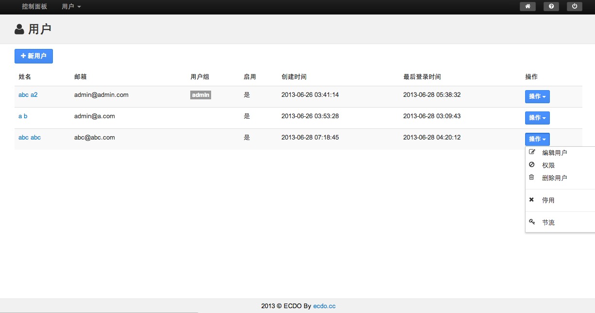 app/config/ecdo/backend/config.php设置系统参数:后台标题、菜单、模板别名等; - 控制器使用