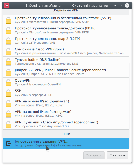 - импорт настроек vpn