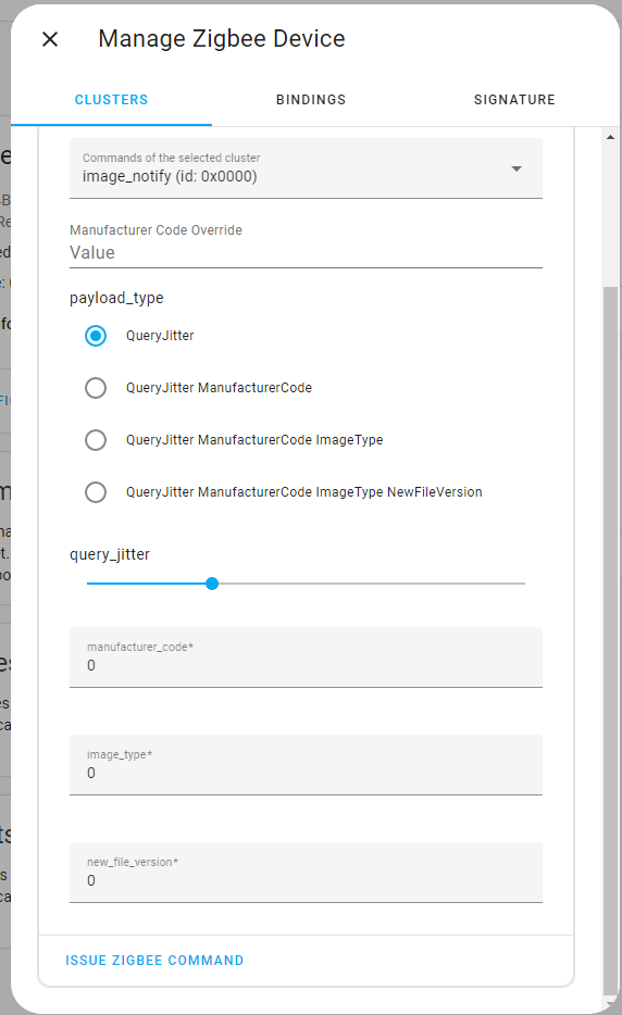 } These three fields are contained within the Zigbee OTA file header. You can extract them yourself from the parsed header: $ pip install git+https://github.com/zigpy/zigpy-cli.git