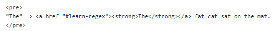 | "/(.*at)/" => <a href="#learn-regex"><strong>The fat cat sat on the mat</strong></a>. </pre> | ||