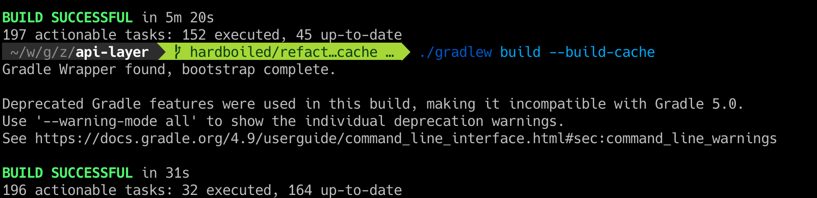 --build-cachefor the usage of build cache.It is also possible to add the following to
