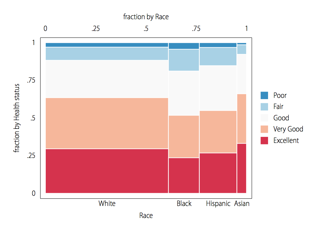 spineplot health raceb, scheme(burd5) // requires the spineplot package